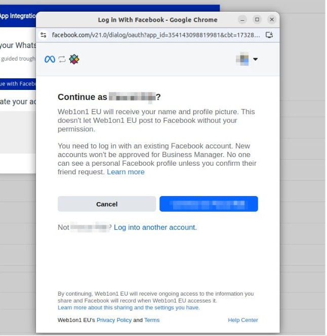 Step 1: Click on Continue with Facebook and make sure that you're not closing the modal showed in the screenshot below.