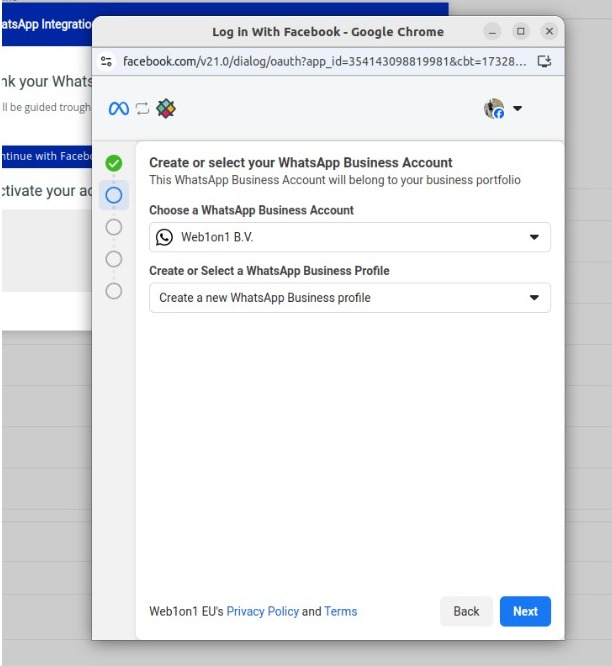 Step 5: Select Create a new WhatsApp Business profile or select an existing Business profile.
